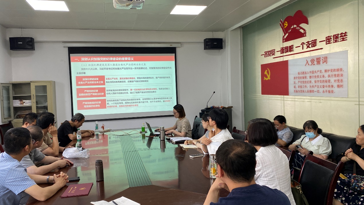 为深入学习新修订的《中国共产党纪律处分条例》(以下简称《条例》),准确把握党纪学习教育目标要求和重点任务,切实通过党纪学习教育,增强支部全体党员的廉洁自律意识,筑牢拒腐防变思想防线,5月31日下午,我院电工电子中心党支部开展“党纪学习教育专题党课”活动。
