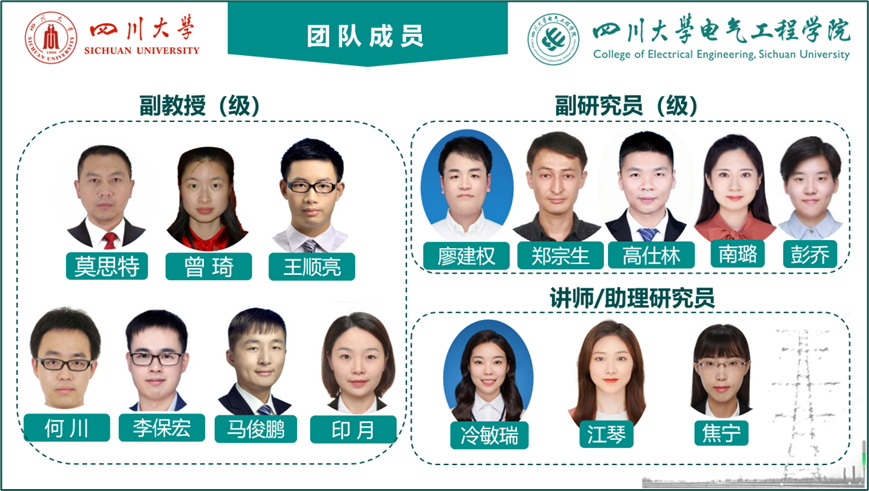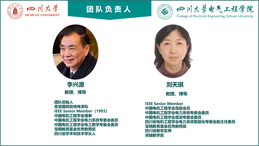 电力系统稳定与高压直流输电团队,是我国最早从事直流输电相关研究的团队之一,创始人为李兴源教授,现任负责人为博士生导师刘天琪教授*,成员包括王海风教授*、王渝红教授*、杜文娟教授*、张英敏教授*、莫思特*、曾琦*、王顺亮*、何川*、马俊鹏*、李保宏*、印月*、南璐*、彭乔*、郑宗生*、廖建权*、高仕林*、江琴*、冷敏瑞、焦宁。团队有教授5人,副教授/副研究员12人,讲师/助理研究员3人,博导6人,硕导12人。此外,团队拥有汤广福(中国工程院院士)、吴磊(Stevens Institute of Technology 副教授)、贺之渊等高端学术顾问和外聘博导。