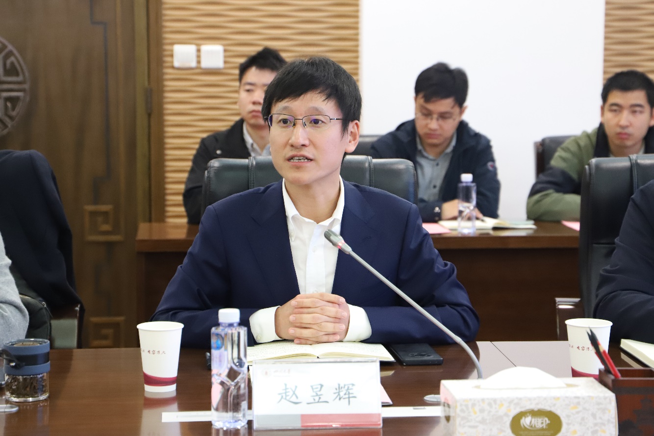 交流座谈会上,学院党委书记赵昱辉代表学院对郑宗强总经理一行来访表示欢迎。期待双方在原有良好合作的基础上,进一步加强产教融合、科教融汇,以人才为本、行业支撑、任务牵引、党建引领,在人才队伍共育、关键技术共研、创新成果共创、党建联建共建等方面深度合作。