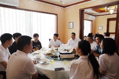 走访结束后,学院师生与2025级新生代表共进午餐。师生们围绕如何适应和度过大学生活、如何做好个人发展规划等,进行了深入交流。新生代表们踊跃发言,表达了对大学生活的美好憧憬,现场气氛温馨而热烈。