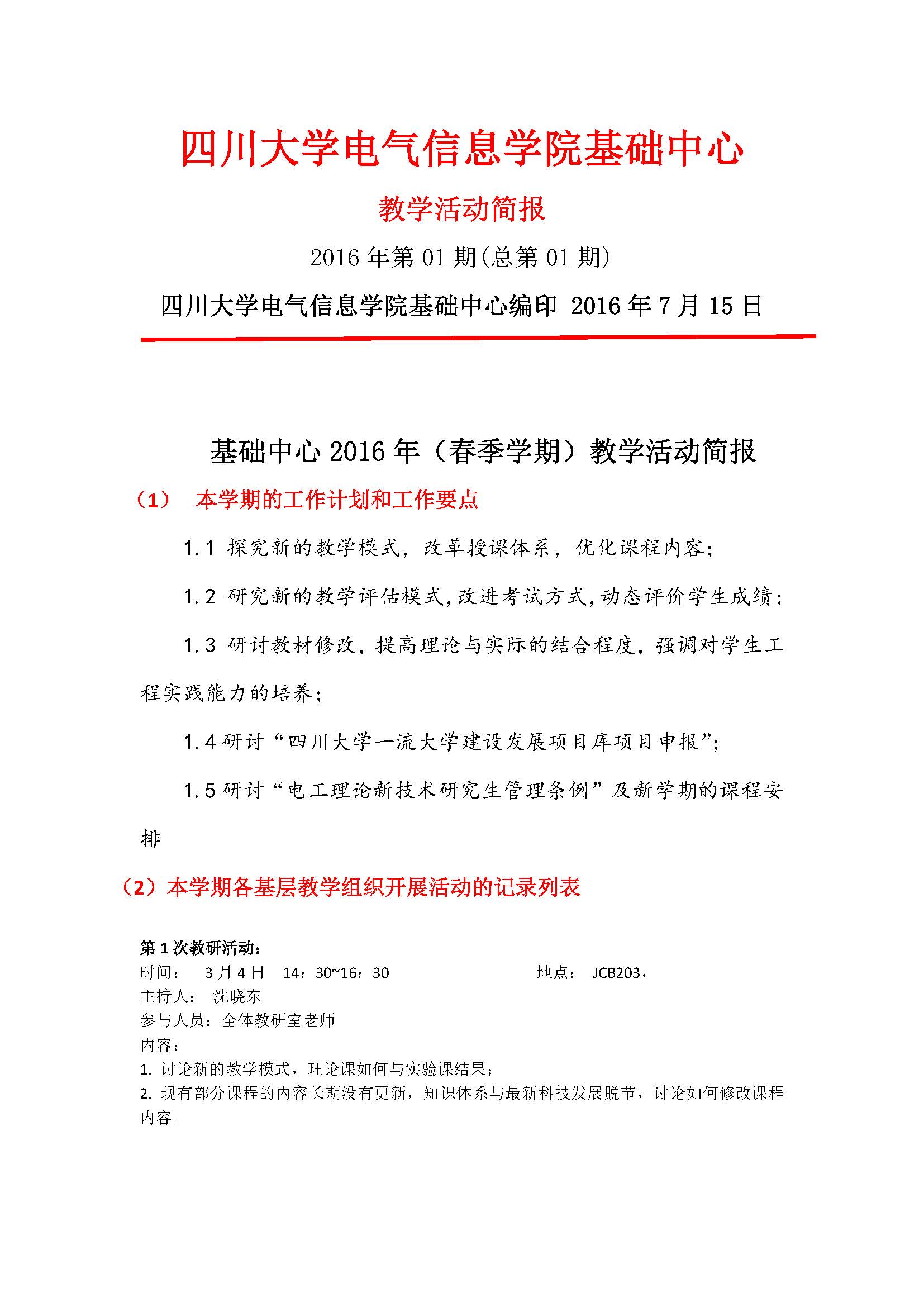基础中心2016年(春季学期)教学活动简报