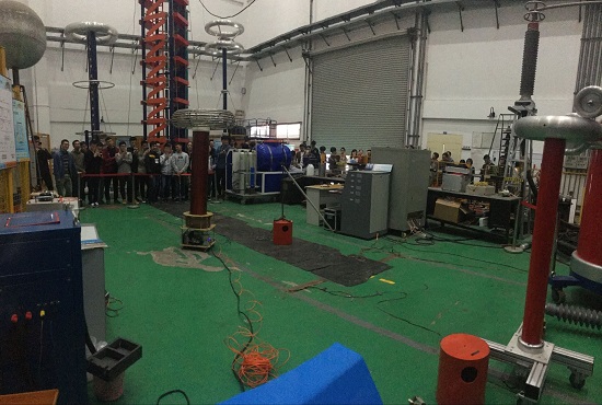 同学们参观高电压实验室