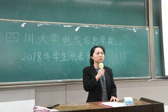 2018年5月26日上午,电气信息学院2018年学生代表大会在江安校区第一教学楼B座301教室顺利召开。电气信息学院党委副书记戴婷婷老师、教导员李小根老师、团委副书记汤博老师和我院116名学生代表参加了本次大会。