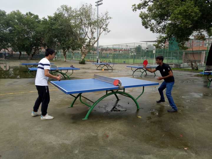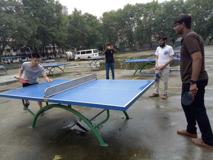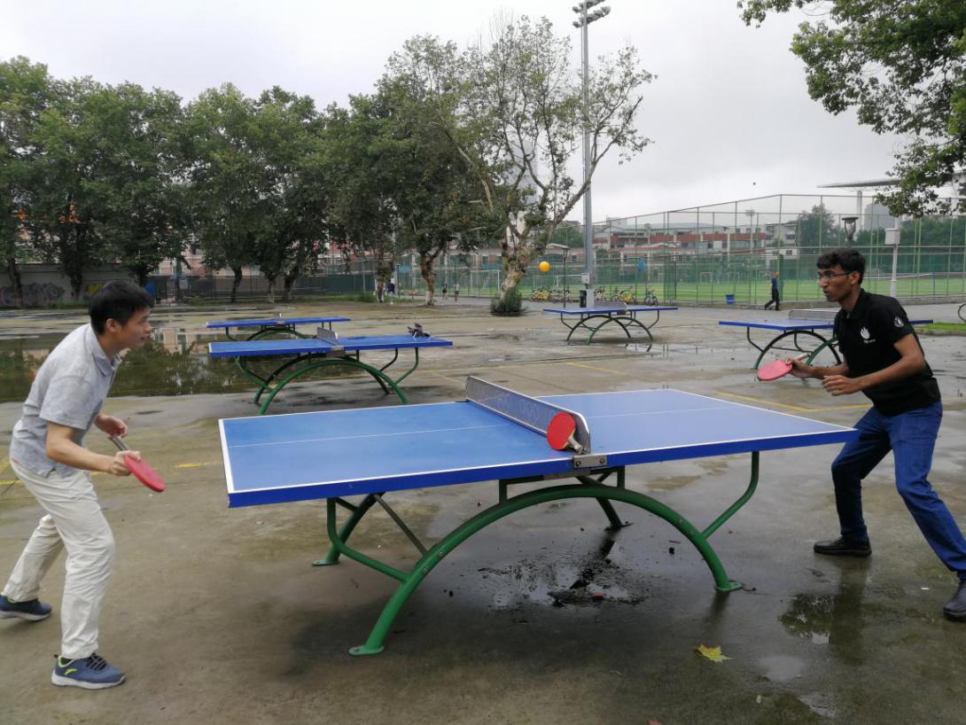 由于来自巴基斯坦的六位交流生谈到他们对中国国球乒乓球十分感兴趣,我院学生便邀请他们进行一场乒乓球交流比赛,在体育锻炼的同时,促进中外文化的交流。