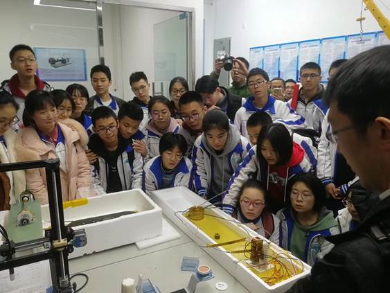 在双创实验中心超导与新能源实验室,王为老师为同学们演示了超导磁悬浮实验,实验所展示出的神奇超导现象,激发了同学们强烈的好奇心和学习兴趣,引得大家啧啧称奇。随后,我院研究生带领同学们参观了学院先进的新能源电气实验室、超导储能实验室、光机电一体化实验室,并为参观同学讲解了LED驱动电源设计流程、高低温超导磁体以及大电机定子绝缘局部放电模型等,高端的实验设备为同学们带来了一场视觉盛宴。