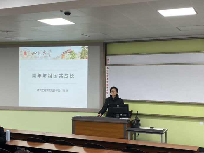 党委书记韩芳以“青年与祖国共成长”为主题,在江安校区一教B307为2019级电气工程及其自动化专业本科生开讲形势与政策专题思政课,勉励同学们以优秀的青年才俊为榜样,做一个有担当、肯奋斗、求上进的青年人。