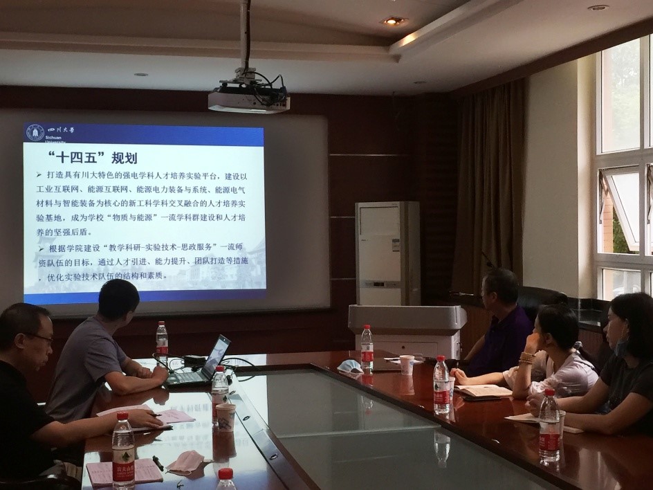 最后,李长松进行了总结,要求两个实验中心积极行动起来,每个岗位都要主动担当,对标一流,全面摸底,与学院各专业积极协调、加强沟通,共同做好学院实验室“十四五”规划,打造具有川大特色的强电学科人才培养实验平台,把我院两个实验中心打造成学校“物质与能源”一流学科群建设和一流人才培养的坚强后盾。