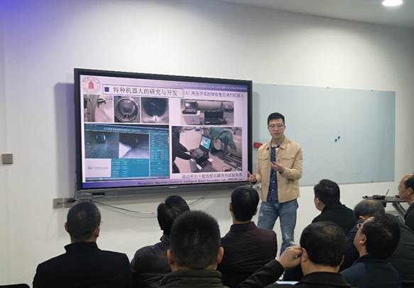 ——罗克韦尔智能制造协同创新中心参观,由实验室的博士向各位代表详细地介绍了创新中心团队的研究方向及负责的科研项目,重点展示介绍了蛇形臂及清扫机器人等机器人的研究与开发情况。