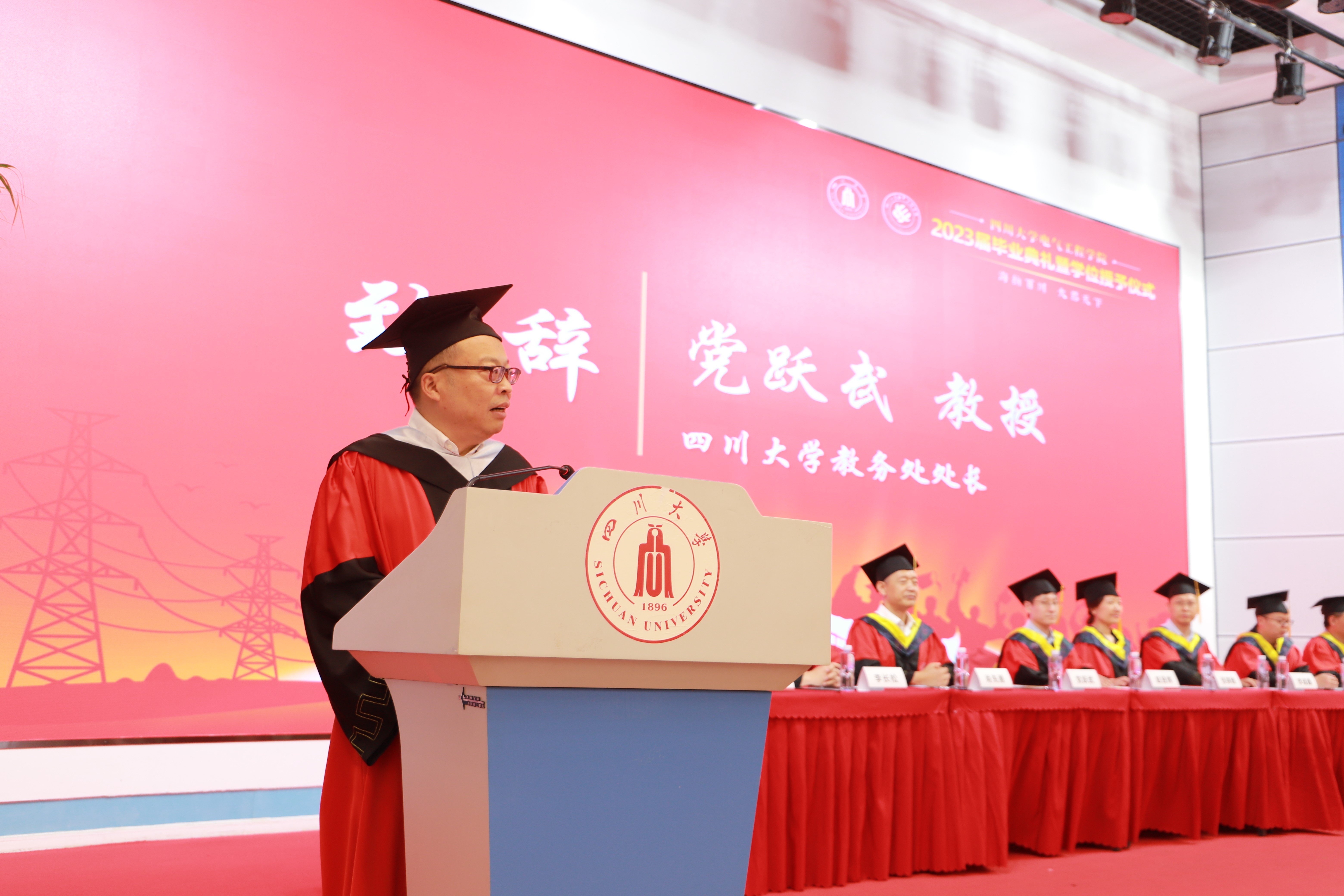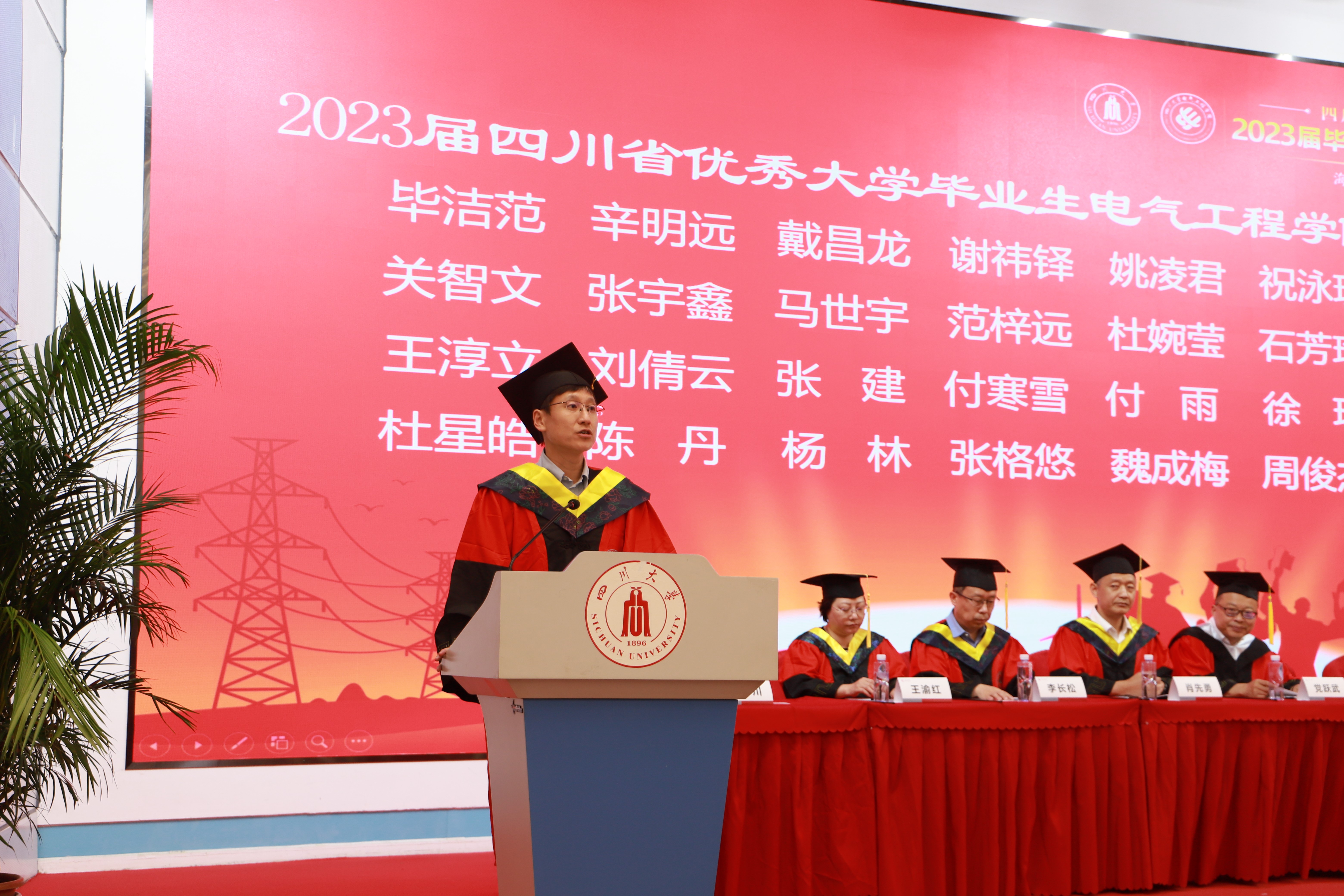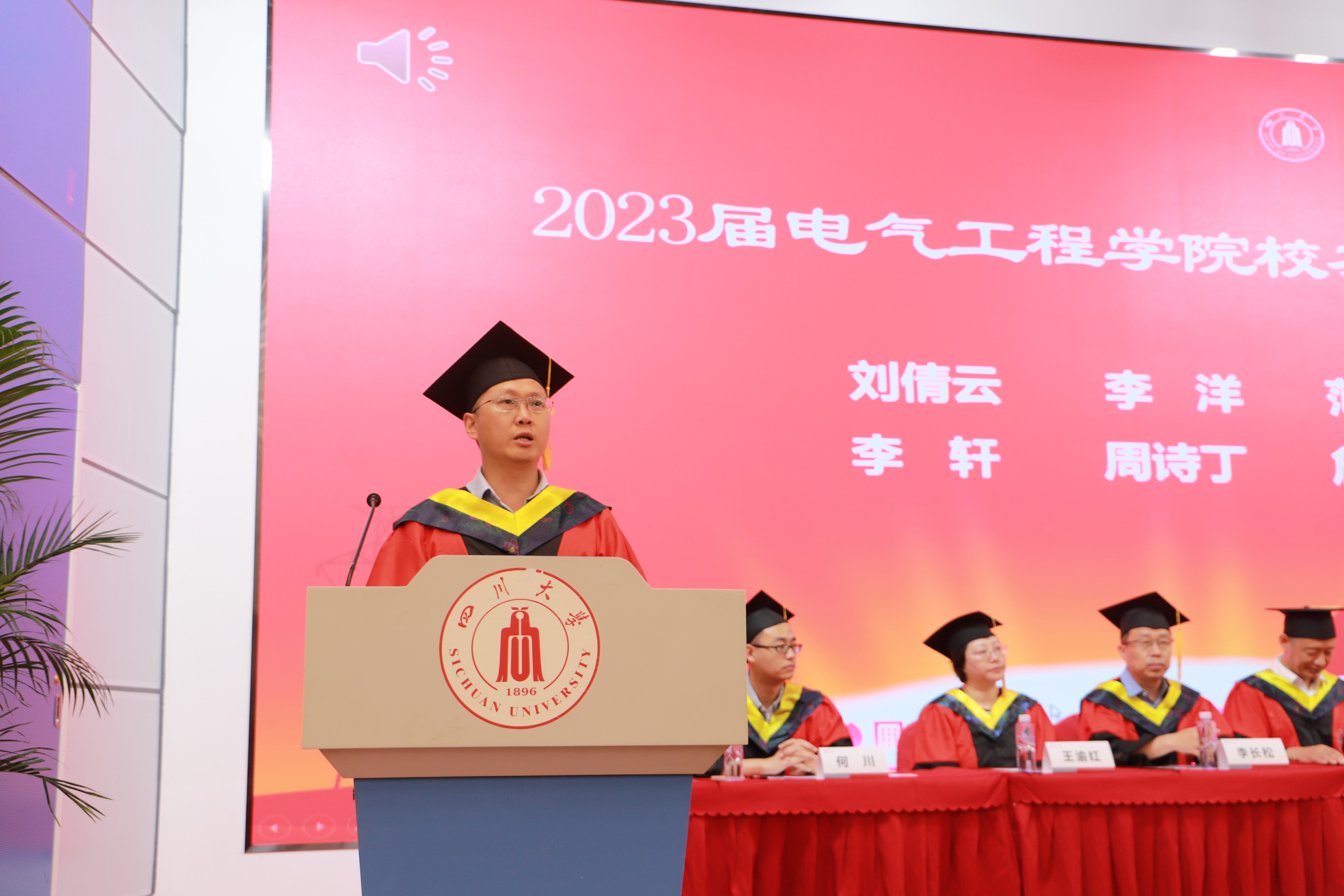 的全体毕业生顺利完成学业、走上新的人生征程表示祝贺。他以川大老校长任鸿隽先生1937年毕业典礼训词中“忠于所学”“有所不为”“继续求学”三句话来勉励同学。他说,忠于所学就是要有心怀国之大者的光荣使命,有所不为就是要有以人民为中心的价值准则,继续求学就是要有把本领学到手的成才境界。他希望每位电气毕业生都要把川大的精神带出去,把川大的味道留身上,奔向五湖四海,融入星辰大海。在新时代的新征程上,一起努力奋进,一起爱党爱国爱川大,永远为伟大祖国雄起,永远为探花视频
