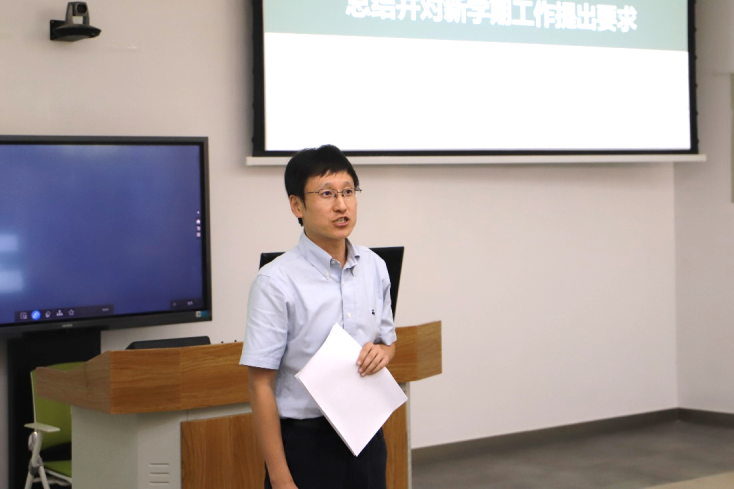 赵昱辉书记作总结并对新学期工作提出要求。他指出,上学期学院主题教育取得新气象,人才培养取得新成效,核心竞争力取得新突破。但面对当前学院人才队伍特别是高端人才和青年人才严重不足、办学资源相对有限、平台建设不够充分,追求一流、敢于胜利的氛围相对较弱等方面问题,在新学期工作中,我们要在理论学习上有高度,找准方向,认真做好主题教育后半篇文章;在系统思考上有深度,找出规律,加强对工作的主动谋划和深入研究;在真抓实干上有速度,找对办法,坚持人才为本、团队先行、平台支撑、交叉赋能;在管理服务上有温度,找实需求,服务师生更加精细化、人性化;在守住底线上有力度,找到短板,促进党建与事业深度融合,统筹做好安全与发展。