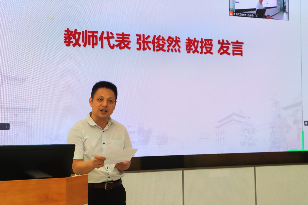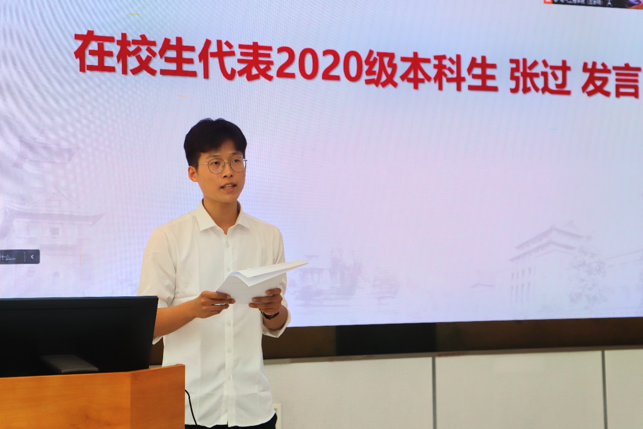 学院2020级电气工程及其自动化专业本科生张过作为在校生代表发言。张过同学从自己的学习成长经历出发,围绕“出彩、精彩和价值观”三个方面切实和新生们分享了大学的学习生活经验。张过表示,要平衡好学习专业课程和科研竞赛的时间,合理有序、脚踏实地向前推进,做到出彩;积极参加活动、学生工作,结交挚友,适度放松,实现精彩;不过分追求分数和荣誉,认识到真正的成功在于对社会的贡献和个人成长,培养诚实、宽容、友善、正直等高尚品德,塑造正确的价值观。