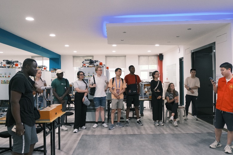 7月2日午后,国际交流营的中外学生们共同走进能源互联网科普基地参观学习。在学院专业教师的悉心引领下,他们先后参观了高电压实验室、新型电力系统与综合能源系统实验室、智能电网及能源互联网实验室、新能源系统实验室、智能控制实验室、工业机器人实验室等。这场融合科普性、专业性与趣味性的深度探访,不仅让中外学生们了解了电气工程和自动化专业领域的广阔天地与璀璨前景,更深刻感受到了探花视频