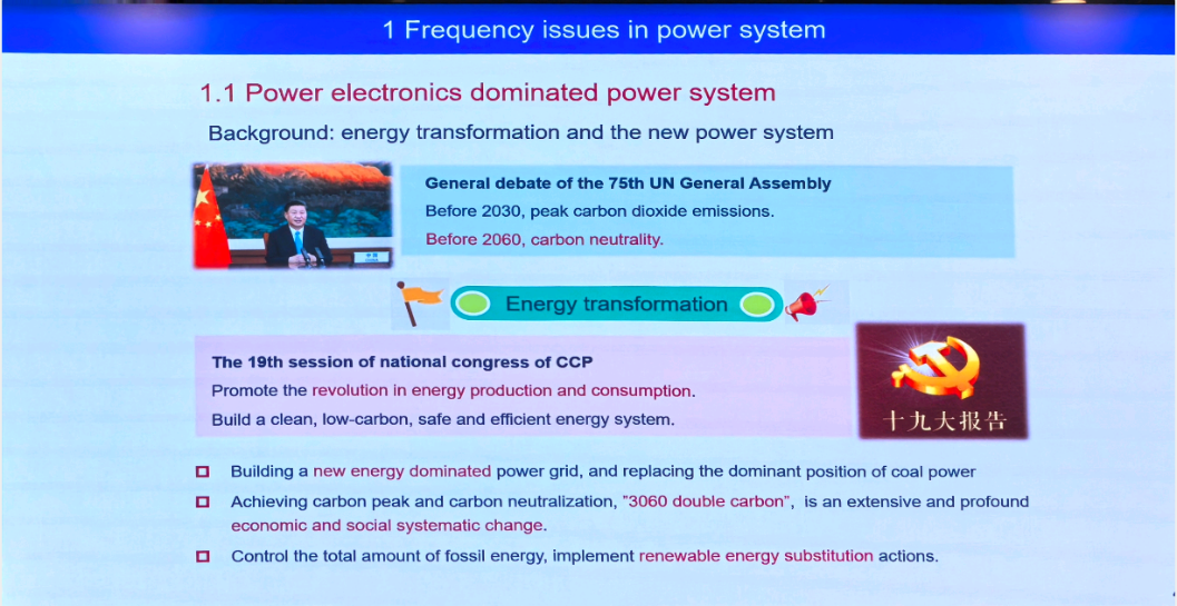 刘小康研究员在第十四届电力与能源系统国际会议上做了题为《换流器主导型电力系统的频率稳定性增强研究(Frequency Stability Enhancement within Converter-Dominated Power Systems)》的主旨报告,围绕可再生能源发电、频率稳定性等问题,分析了电网物理结构、技术要求和相关规范的演变趋势,并提出了可能的解决方案。