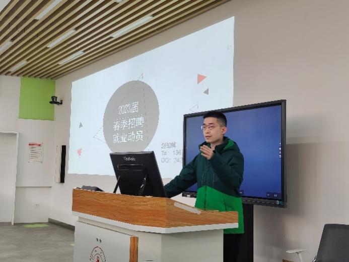 随后卢静老师向同学们介绍了往届的考研情况,对学院考研整体情况及形势进行了详细分析,强调了考研复试和调剂环节中的时间节点和注意事项,并给出了往届考研同学调剂成功的院校供同学们参考。接着赵劲帅老师为同学们进行了春季就业形势分析,并向同学们详细介绍了求职就业基本流程、求职信息获取途径、求职所需材料准备,同时分享了一些求职小技巧,希望同学们能够积极投入到春季就业准备中,全面提高自己的就业竞争力,尽早找到心仪的工作。