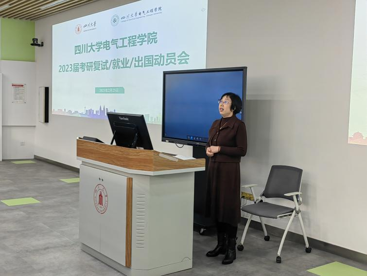 在基础教学楼C104教室组织召开2023届本科毕业生的深造就业动员会。学院党委副书记戴婷婷、电气工程及其自动化专业副教授赵莉华、2019级本科生辅导员老师李程、学生就业专项负责老师赵劲帅、学生深造专项负责老师卢静、启德教育相关老师以及2019级本科生参加了本次动员会。会议由2019级辅导员老师李程主持。