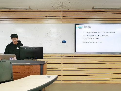 第四个环节由协会优秀学长进行经验分享与答疑。协会成员王一凡、缑绪朋两位同学根据个人参赛经历向同学们分享了比赛心得,指出了备赛训练过程中应关注的问题并提出了可行性建议,为低年级训练小组提供了经验借鉴。