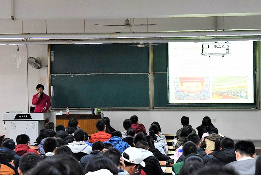 韩书记的“学习贯彻十九大精神,争做新时代有为青年”专题思想政治理论课在同学们的掌声中圆满结束了。生动的授课给2017级同学们留下了深刻印象,让同学们受益匪浅。通过这次课,同学们加深了对十九大精神的认识和理解,对个人的未来、祖国的发展有了更多期许,有助于同学们在大学初期及早树立个人目标,并做好积极规划。