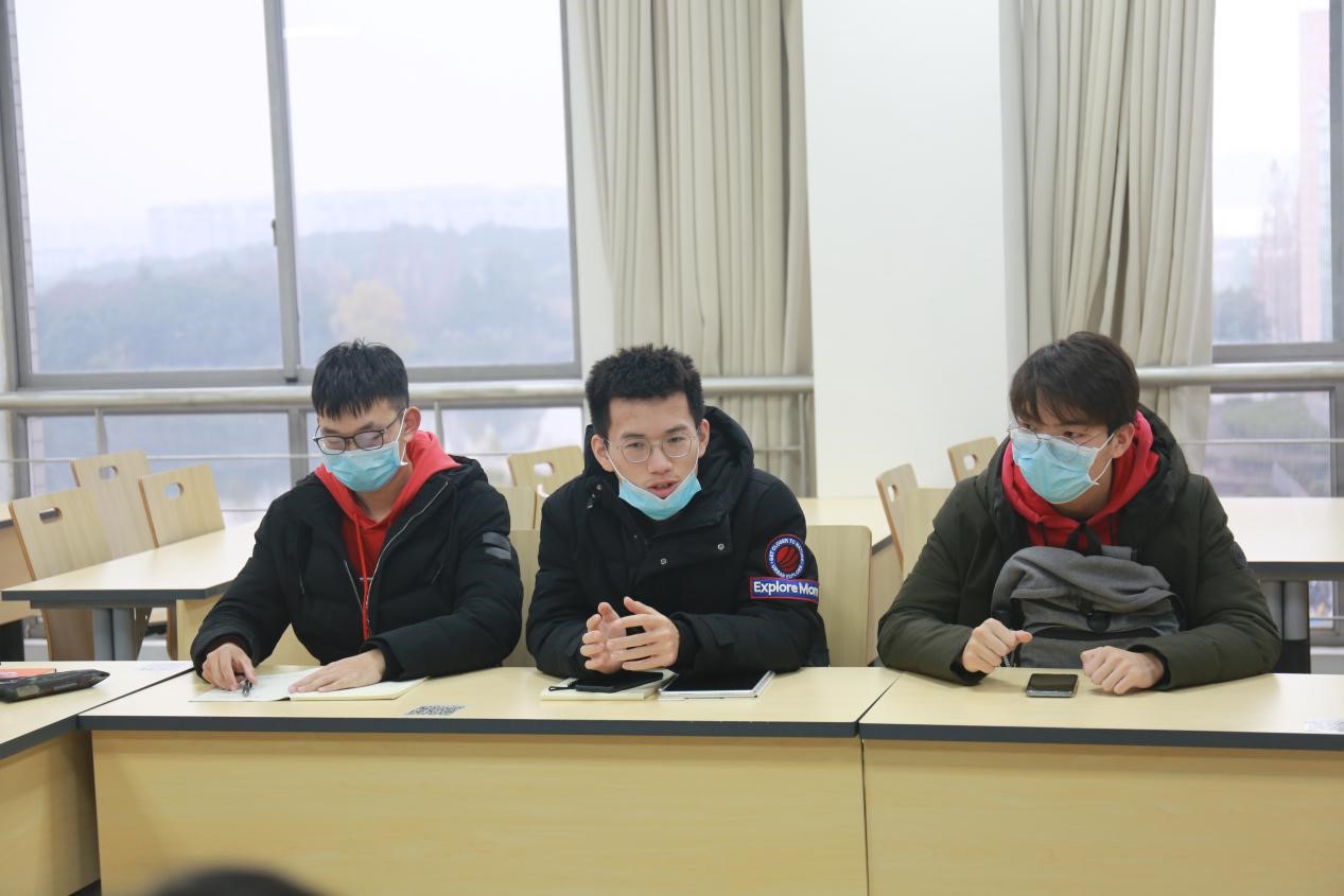 随后进行的是2020级本科生座谈会。14名学生代表畅所欲言,对学院、学校各方面管理表达了自己的看法。同学们围绕团学组织建设、基础设施建设、后勤保障、寝室围合安全、校园疫情防控等方面提出了各自的意见和建议,希望学校能在相关方面更加贴近学生们的真实需求。老师们在耐心听取大家的发言后,也与同学们进行了相应交流。老师们建议大一同学可以主动增加与任课老师、辅导员老师、班主任老师、驻班学长的沟通互动,积极获取关于专业学习和个人发展的建议,及时解决困惑,更好地适应大学生活。