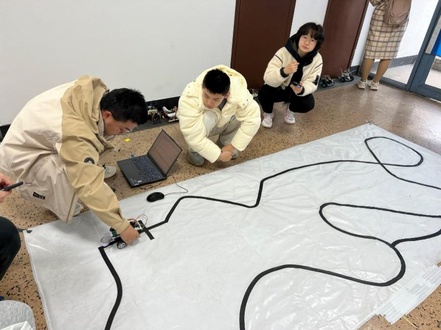 12月10日中午12:30,智能车大赛准时开始。参赛选手们按照事先安排的流程有序参加比赛。比赛要求智能小车实现通过自动循迹赛道等完成绕赛道的自动驾驶。比赛中每个小组有十分钟的比赛时间,在比赛时间内可以对车模进行烧录代码、调试等操作。