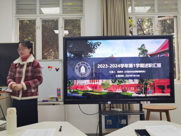学生科在望江校区基础教学楼A座217召开了2023年度兼职辅导员述职工作会。学院党委副书记戴婷婷以及全体专、兼职辅导员参加本次会议。