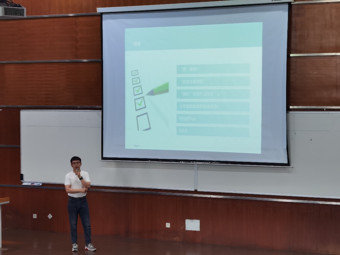 2014届的优秀青年校友,袁老师从自己本科期间如何确定就业目标、规划职业路径,到最终成功入职西门子的全过程进行了详细介绍。他强调了本科期间课程学习及个人综合能力培养的重要性,并分享了自己的经验与建议。讲座现场,同学们积极互动,袁老师耐心解答了同学们关于西门子招聘要求以及如何确定个人职业兴趣等问题。