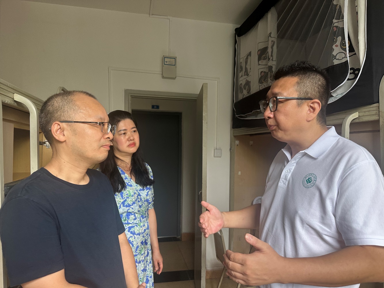 迎新点位,看望2024级新生和家长,详细了解学院迎新工作开展情况,慰问参加迎新的工作人员和志愿者。