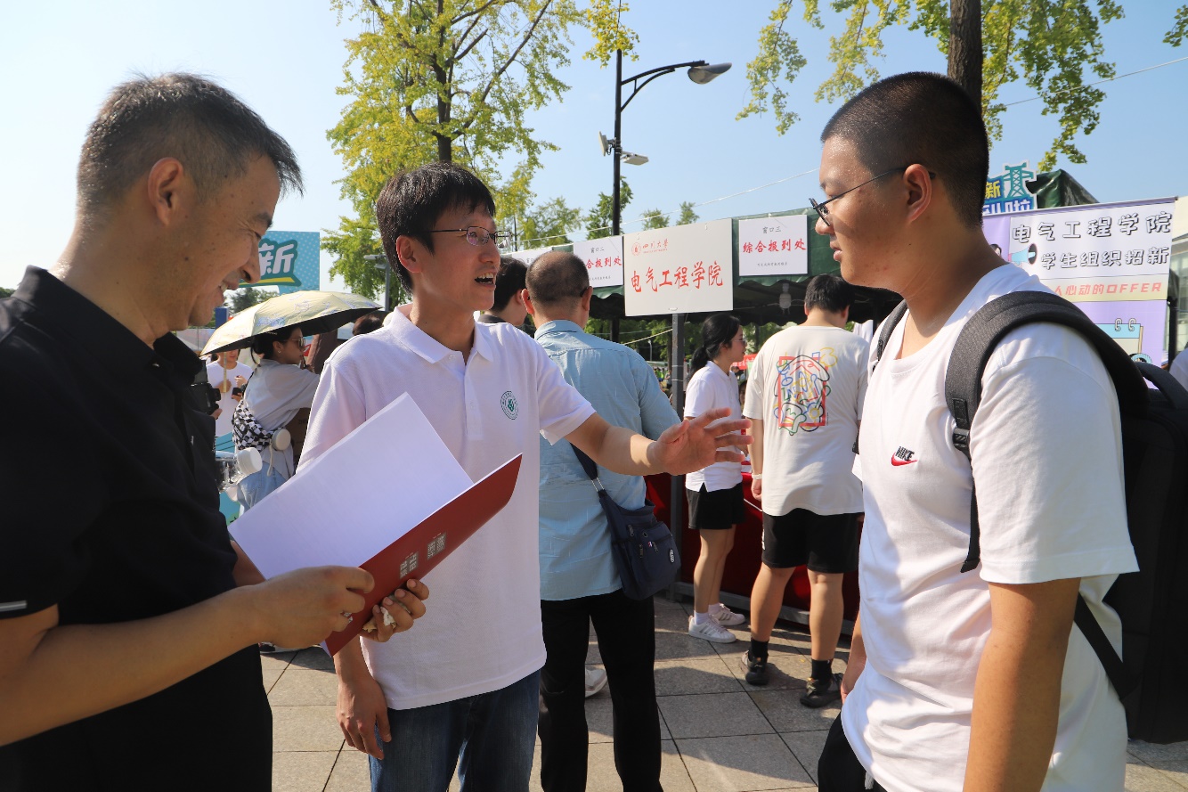 学院党委书记赵昱辉,副书记戴婷婷,电气工程系党支部书记、院长助理陈实,国家级青年人才、院长助理王栋,电工电子基础实验教学中心党支部书记印月,新生班主任代表任俊文副教授在学院迎新点位与辅导员赵劲帅、李程、杨龙杰、朱愉田,及学生志愿者们一起引导新生办理报到手续,并与新生和家长深入交流。
