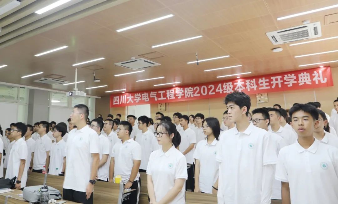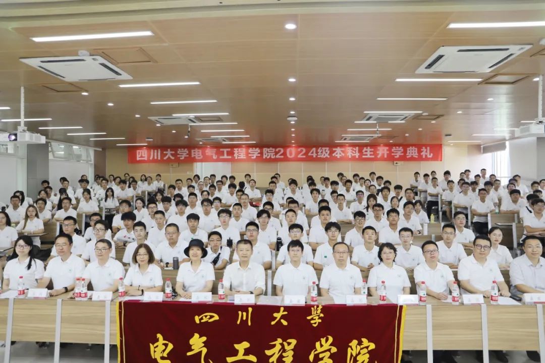 2024级本科新生开学典礼于江安校区成功举办。学院党委书记赵昱辉、院长肖先勇,副书记、纪委书记兼工会主席张英敏、副书记戴婷婷,副院长李长松,电气工程系党支部书记、院长助理陈实,院长助理汪颖、王栋,电气工程系主任王渝红,自动化系党支部书记刘念、系主任赵涛,电工电子基础实验教学中心主任沈晓东,专业实验中心党支部书记任瑞玲出席了本次典礼。学院2024级本科生辅导员及全体546名本科新生参加了本次开学典礼。