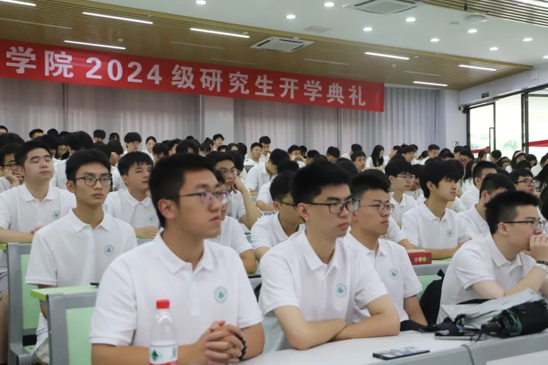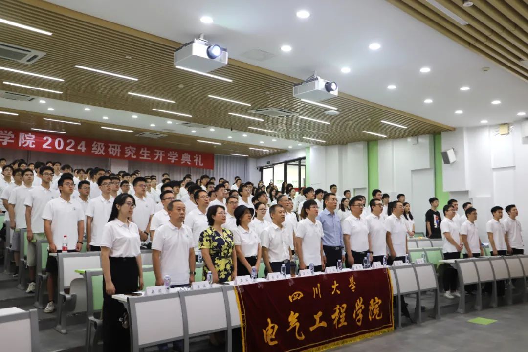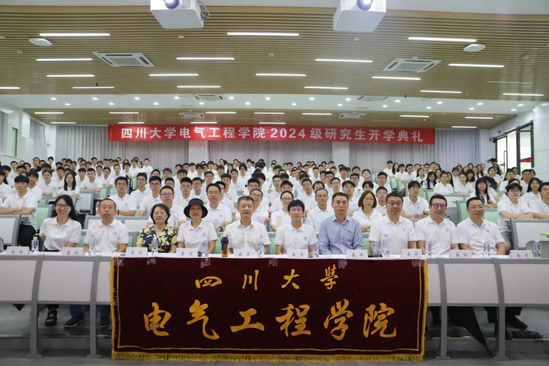 2024级研究生新生开学典礼在望江校区隆重举行。学院党委书记赵昱辉、院长肖先勇,副书记、纪委书记兼工会主席张英敏、副书记戴婷婷,副院长周步祥、副院长李长松,电气工程系党支部书记、院长助理陈实,院长助理汪颖、王栋,电气工程系主任王渝红、电气工程系教授贾申利,自动化系党支部书记刘念、系主任赵涛,电工电子基础实验教学中心党支部书记印月、主任沈晓东,专业实验中心党支部书记任瑞玲、主任肖勇出席了本次典礼。学院2024级研究生辅导员及全体281名研究生新生参加了本次开学典礼。