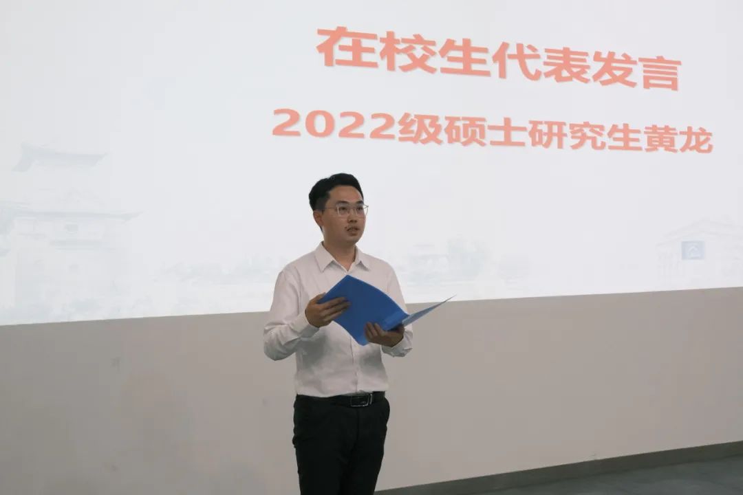 2022级硕士研究生黄龙作为在校生代表发言。他说,作为川大电气的研究生要以求真务实的科研作风要求自己,不断提升创新能力,增强个人综合素养,将科研与社会需求结合,承担起电气人的社会责任。