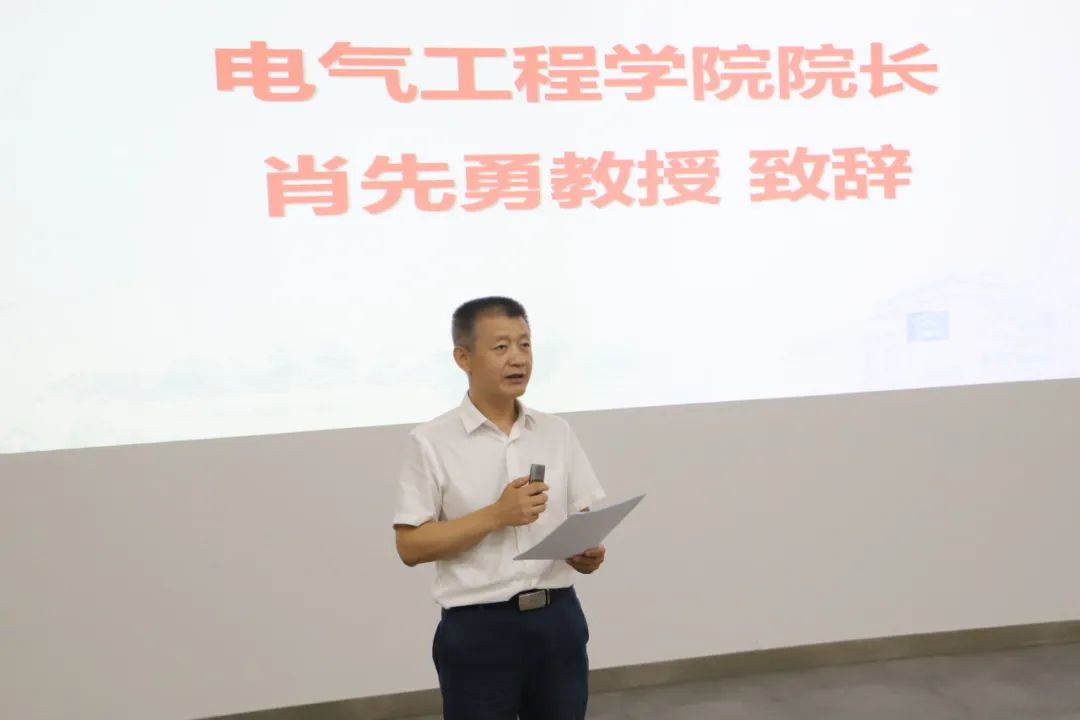 百余年的辉煌历史,介绍了学院在能源电力和人工智能等领域的重要地位与成就。他鼓励新生们要志存高远,勇于担当,把个人追去主动融入集体、国家的需要。同时,肖院长强调了学术精神的重要性,呼吁同学们崇尚学术、追求卓越,通过不断磨砺,练就真本领,成为引领科技创新的栋梁之才。最后肖院长鼓励同学们脚踏实地,顽强拼搏。用青春的激情和智慧谱就精彩人生,把自己磨砺成国之大者、川大电气之骄傲。