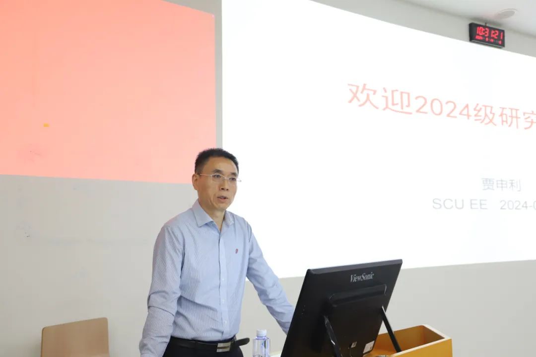 副院长周步祥从机构平台、人才队伍、学科基础、科研情况、学术团队等方面介绍了学院的基本情况及研究生培养体系。勉励全体新生珍惜在川大的学习机会,主动迎接挑战,努力提升学术水平和科研能力。希望同学们在未来的学习生活中,不仅要追求个人学术成就,更要将自身发展与国家的需求结合起来,为推动科技进步和社会发展贡献智慧与力量。