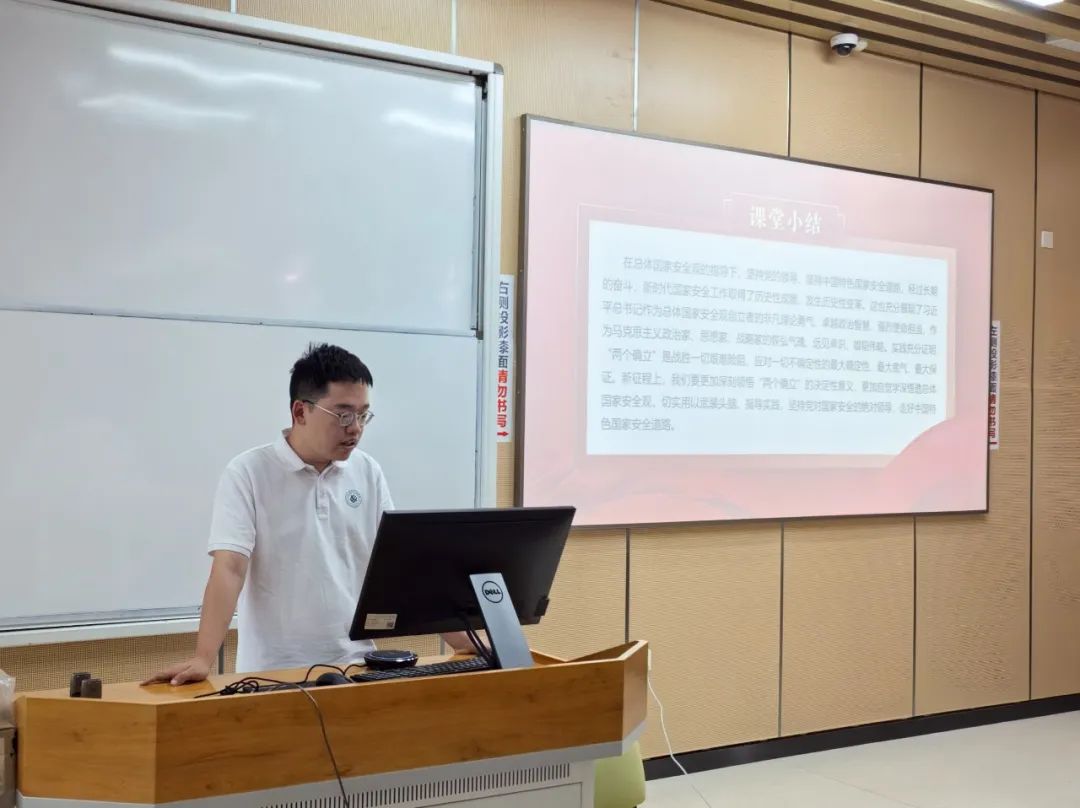 9月9日至9月10日,赵劲帅老师与朱愉田老师为同学们讲授了国家安全教育系列课程,包含“导论”“总体国家安全观”“在党的领导下走好中国特色国家安全道路”以及“统筹发展和安全”四个专题。为期两天的授课不仅为新生构建了一个全面、深入的学习平台,更在他们心中种下了国家安全的种子。未来,学院将继续深化与国家安全相关的教育活动,携手社会各界,共同为培养具有强烈国家安全意识和深厚家国情怀的新时代青年而不懈努力,让青春之花在家国安全的沃土上绚丽绽放。