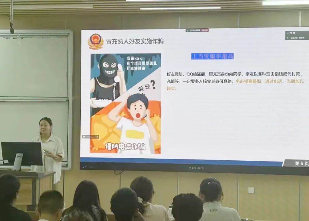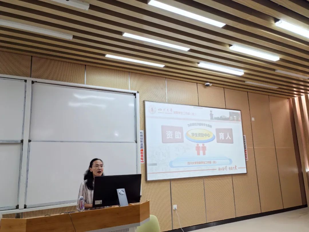 的每一位学子构筑起坚实的后盾,顺利迈向学业成功的彼岸。随后,卓玛老师对资助中心的成才计划、工作坊、“4+3”学生团队进行介绍,助力同学们提升综合能力。最后,卓玛老师提醒同学们警惕电信诈骗,远离校园贷款,增强防范意识和自我保护能力。