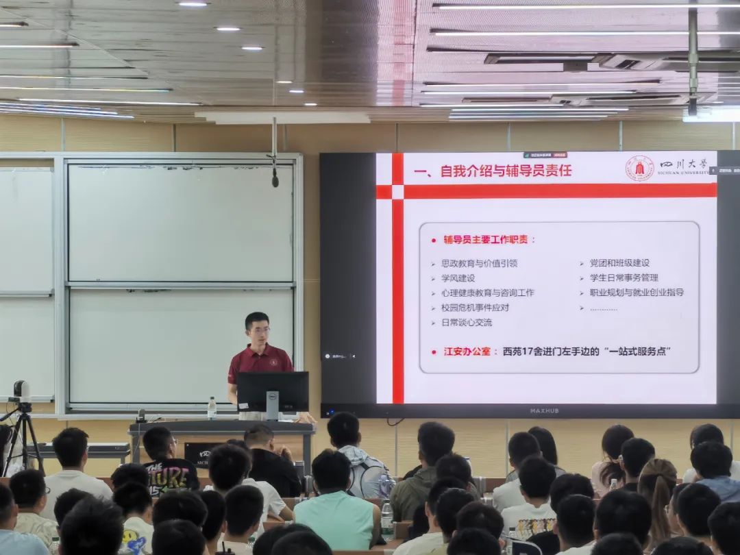 9月9日上午,校纪校规安全教育暨辅导员见面会在江安校区综合楼顺利召开。学院2024级本科生专职辅导员赵劲帅,兼职辅导员游梦悦、谭茹月,以及全体2024级电气类专业本科新生参与此次活动。会上,赵老师对同学们的到来表示热烈欢迎,并介绍了辅导员老师职责、校规校纪、安全注意事项、学校日常管理规范等,勉励同学们尽快适应大学生活。随后,2023级学姐代表黄沁心为大家开展了“新型电信网络诈骗防范”宣讲,提升同学们的防骗意识和自我保护能力。