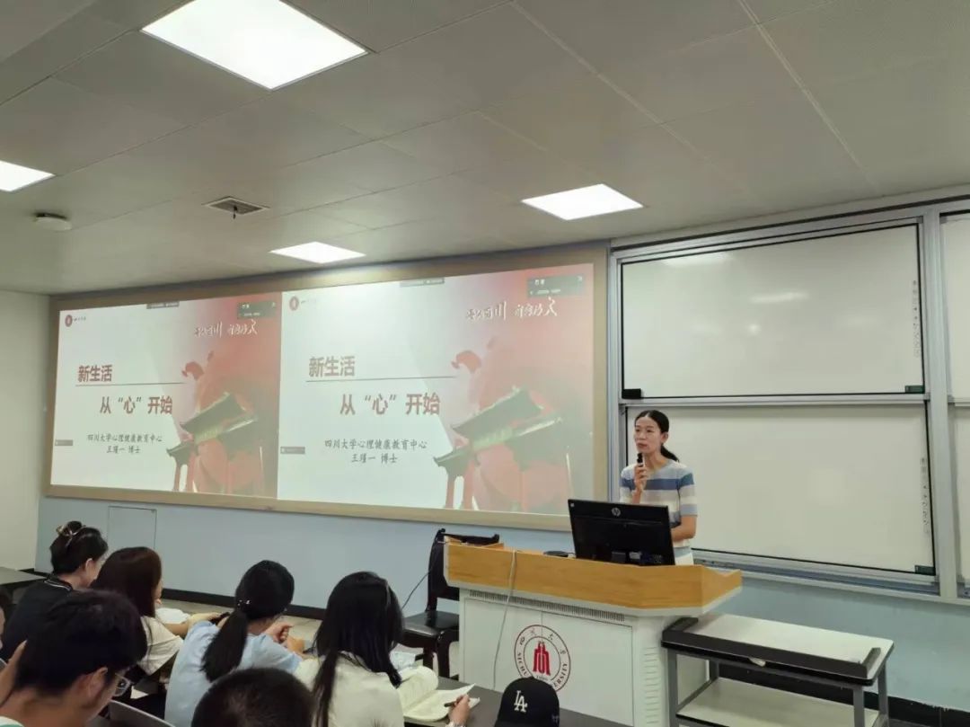 9月9日下午,同学们齐聚江安教学楼,聆听心理健康教育中心王瑾一老师“新生活从‘心’开始”讲座。王老师围绕心情、心态、心理三方面,解析新生面临的三大变化,并鼓励新生学会适应、学习、沟通、管理和求助,为新生启航大学生活打下坚实基础。