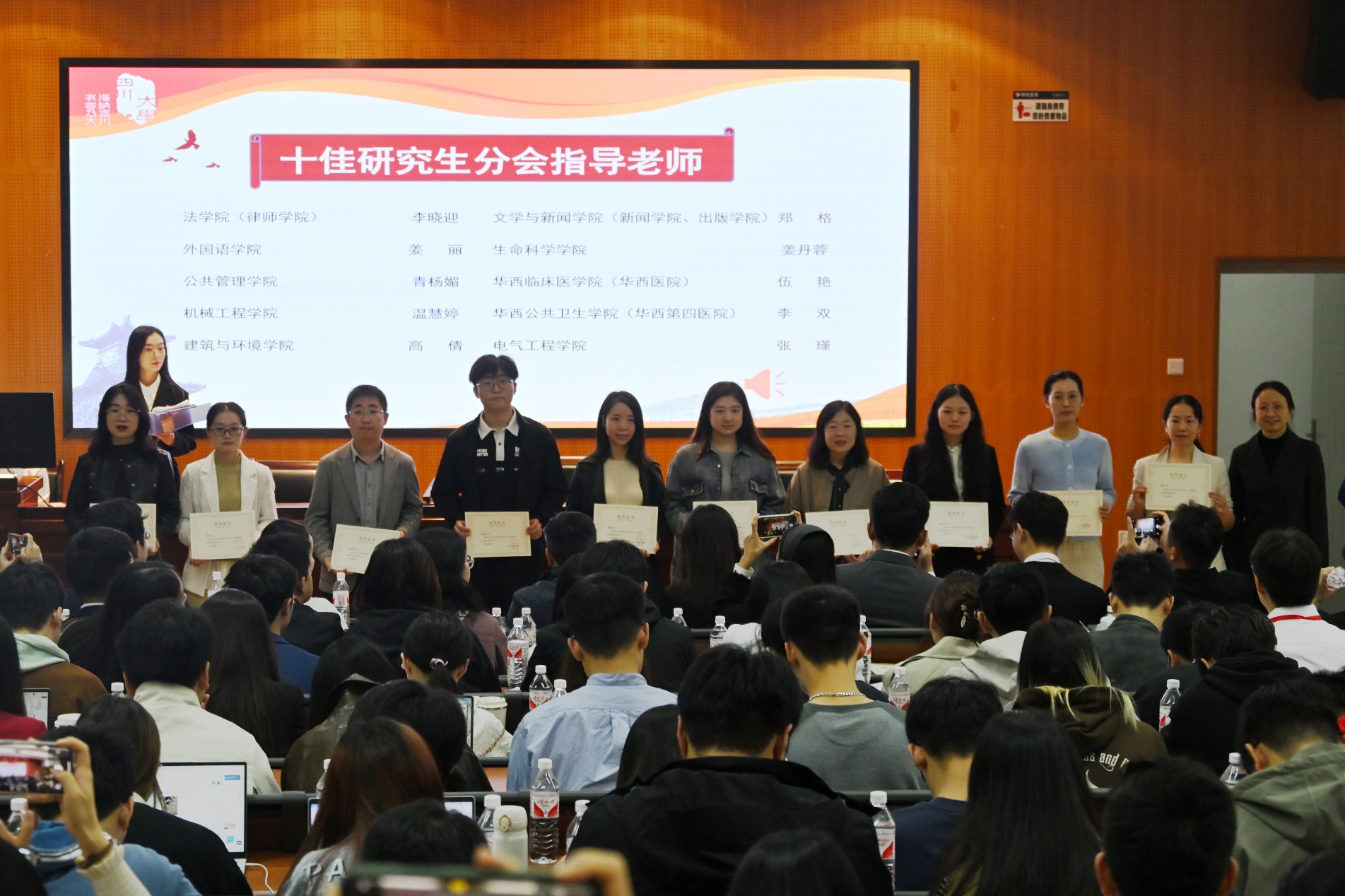 第三十七次研究生代表大会上,学校领导颁发了十佳研究生分会、十佳研究生分会指导老师、十佳研究生分会主席荣誉证书。