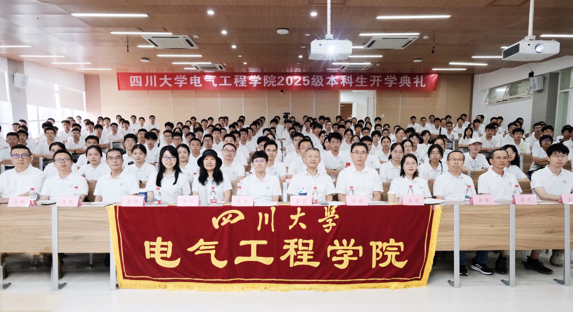 2025级本科新生开学典礼于江安校区成功举办。学院党委书记赵昱辉,院长肖先勇,副书记、纪委书记张英敏,副书记戴婷婷,副院长李长松、陈实、汪颖,院长助理王栋,电气工程系主任王渝红,自动化系主任赵涛,电工电子基础实验教学中心主任沈晓东,专业实验中心主任肖勇,学院教授代表贾申利、刘凯、刘小康、赵彦普,以及2025级本科生辅导员和全体532名本科新生参加了典礼。典礼由学院团委副书记李程老师主持。