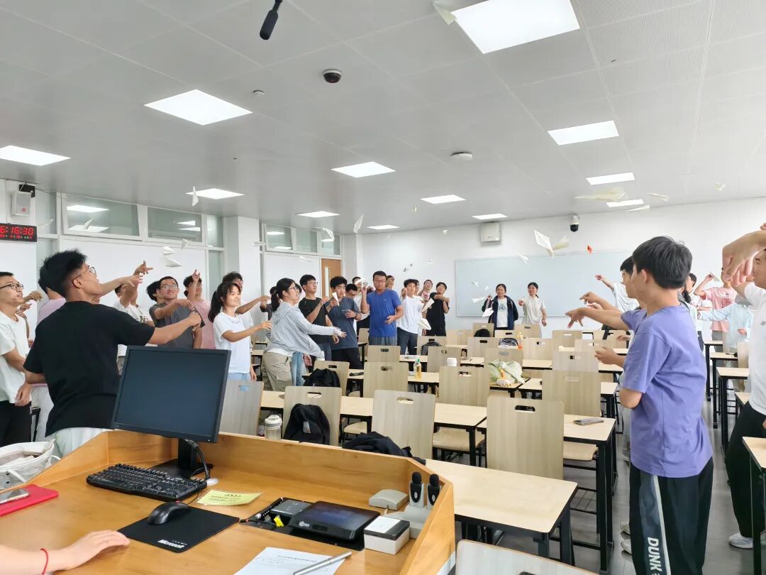303-304班以独特的"传情纸飞机"活动开展班级破冰,同学们在彩纸上认真写下对大学生活的美好期待和对新同学的真诚祝福,然后将纸折成各式各样的飞机。随着一声令下,五十多只五彩缤纷的纸飞机在教室里划出优美的弧线,同学们兴奋地捡起他人的飞机,认真阅读上面的寄语,相互分享着纸飞机上传来的温暖祝福。
