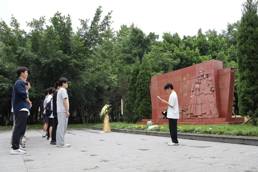 2024级303-304团支部同学们来到江安校区英烈碑广场,支部代表手持鲜花,缓步走向英烈碑,庄重地将鲜花摆放在碑前,代表全体同学表达对革命先烈的深切悼念与崇高敬意。全体同学肃立低头,默哀一分钟,以沉静姿态寄托对为国捐躯先烈的沉痛缅怀。团支书发言,结合学习生活实际,号召同学们铭记历史、珍爱和平、刻苦学习、锤炼本领,将抗战精神转化为砥砺前行的动力,在民族复兴赛道上奋勇争先。