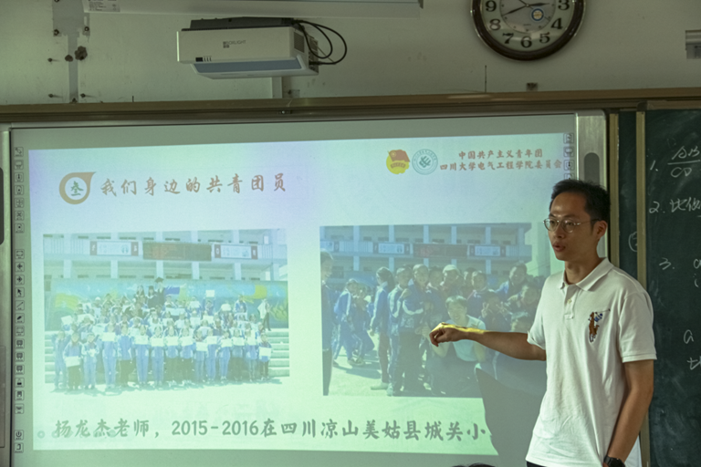 2024级本科辅导员杨龙杰老师的支教故事,激励同学们以新时代团员标准严格要求自己,立志为强国建设贡献青春力量。课堂中,同学们积极互动、踊跃发言,现场气氛热烈。