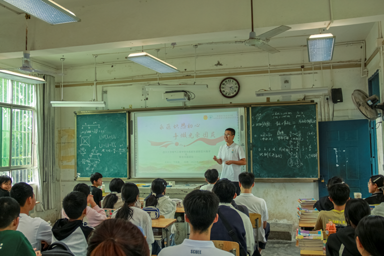 团课中,杨龙杰老师分享了自己在支教过程中的心路历程。他以朴实的语言讲述他的教育初心与奉献故事,鼓励同学们以奋斗书写青春篇章,在学习中磨砺意志、增长才干。同学们纷纷表示要努力学习,积极奉献,用老师的优秀事迹激励自己,希望未来成为和他们一样的青年。