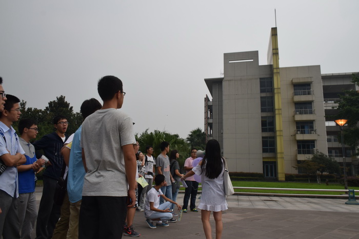 参加活动的新生们在2014级学生的带领下分为三组,从青春广场中央的国旗杆下出发,按照不同的路线来游赏江安校区美景。在愉悦的氛围中,大家领略了长桥、东门、明远湖畔、白石桥及不高山等具有江安校区独特风貌的景观,同时也对第一教学楼、综合楼、江安体育馆、图书馆、文科楼和第二基础实验楼等学习场所有了全方位的了解与领悟。