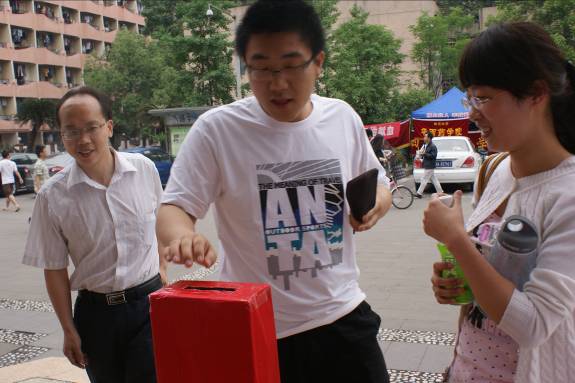 江安校区青春广场和望江校区中心食堂设点,为何兴全同学举行爱心募捐。师生们为与病魔抗争的他献出款款爱心,有的同学还积极地在留言本上为他写下鼓励祝福的话语,为其加油,祝愿他早日康复出院,重返温馨校园。这些都将带给何兴全同学更多的温暖和更大的支持。募捐活动于下午3点顺利结束。
