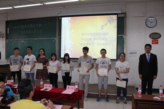 电气信息学院执行副主席郑祥存颁发“优秀提案奖”并合影留恋