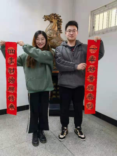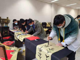 于2021年1月22日组织教职工和寒假留校学生代表开展迎新春写对联活动。