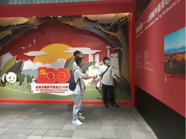 团队成员参观成都规划馆内建党100周年板块