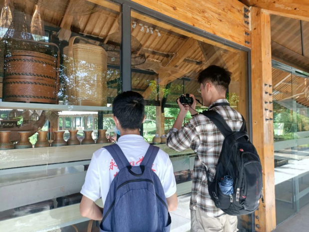 而成都市崇州的“道明竹编”,同样应该被更多人了解到并传承下去。“道明竹编”是四川省崇州市道明镇的特产,同时也是国家非物质文化遗产、国家地理标志性产品。团队在参观完道明竹艺村内的竹编博物馆后,进入了著名的“红梅体验馆”,跟随编竹的工匠,学习制作竹扇、竹铃铛等竹编工艺品,在制作过程中感受到了竹编的繁琐,在体验馆师傅的耐心指导下,成员们最终成功制作了自己的竹编手工,感受到了非遗竹编的魅力。通过与竹编匠人和竹艺村村民的交流,了解了国家非物质文化遗产“道明竹编”约4300年的漫漫历史及竹编发展现状,感受到了国家在乡村振兴与传统文化结合的探索。