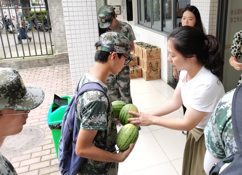 学院的慰问是酷暑中的一丝清凉,鼓舞了士气,振奋了精神。希望同学们能保持昂扬状态,在磨砺之中迅速成长,培养吃苦耐劳和坚持到底的精神,圆满完成各项训练任务,为大学生活增添光彩!