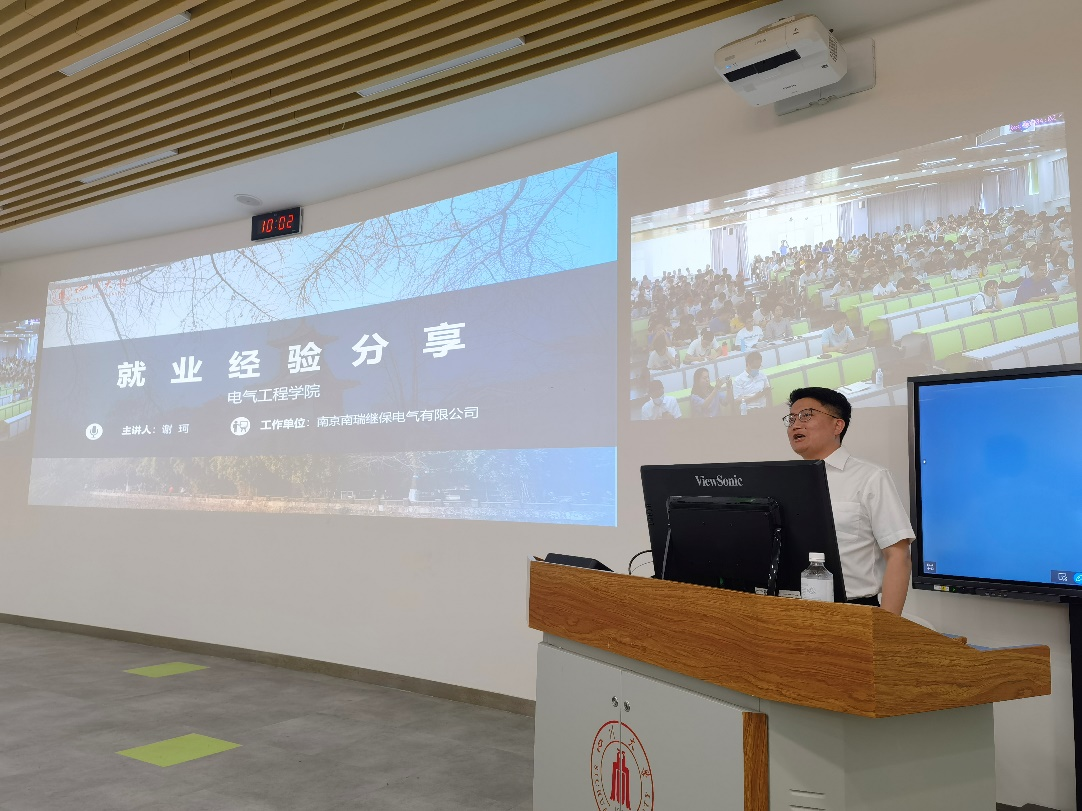 优秀校友、南京南瑞继保电气有限公司人资管理部经理谢珂,南京南瑞继保电气有限公司研究院研发质控部主任笃峻,南京南瑞继保电气有限公司研究院技术专家吕玮,探花视频